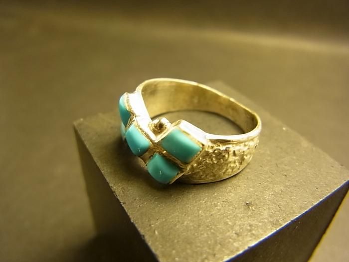 ズニ族<5ダイヤ・ターコイズ> インレイ・リング・8号 160J211