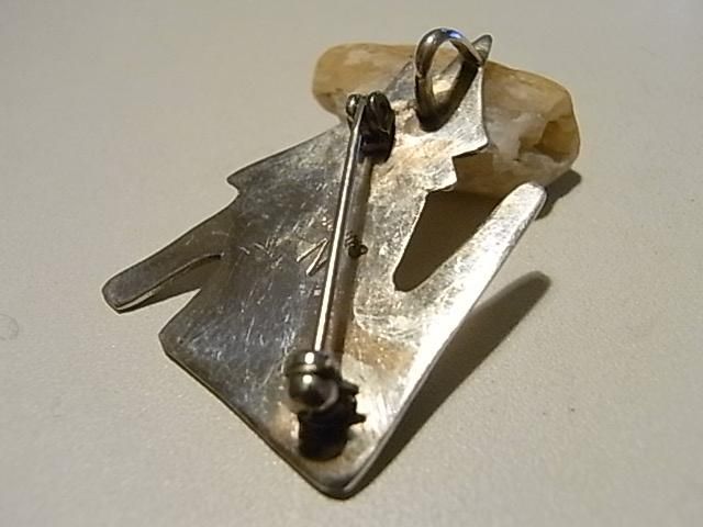 ナバホ族【Pauline Nelson】 スタンプワーク<Coyote or Wolf/コヨーテorウルフ・狼>ブローチ&ペンダント 25N09