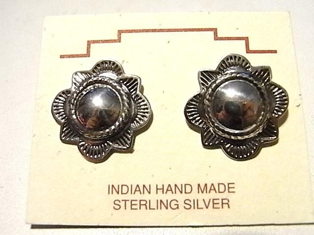 ナバホ族のアーティスト【HENRY MARIANO】のハンドメイド・・・・伝統技法であるスタンプワークによる装飾を施したラウンドコンチョのピアスです。