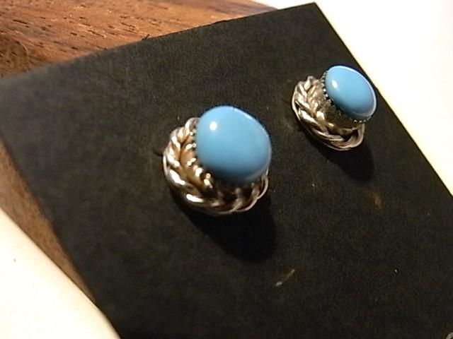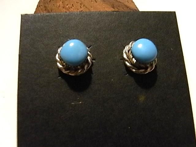 ラウンド型◎のターコイズのピアスです!ツイストワイヤー装飾のオールドスタイルなトラディショナルな作品。小さいながらもビンテージ感もあって魅力的です。