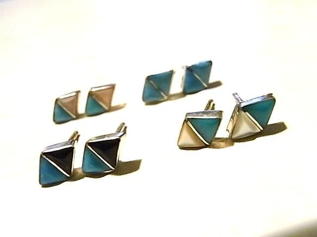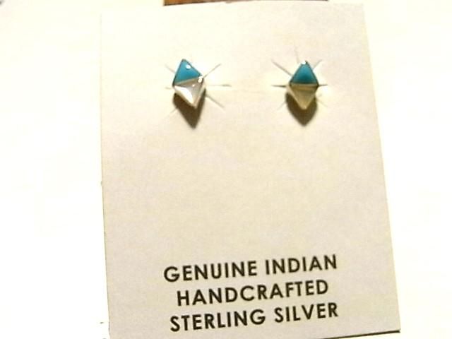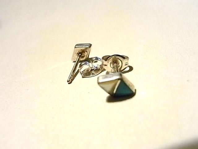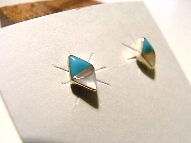 ズニ族インレイジュエリー<ダイヤ型♦Turquoise&White/ターコイズxホワイトシェル>チャンネルインレイ・ピアス 25N29